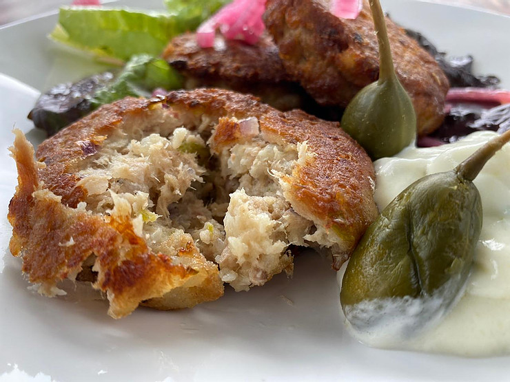 This recipe makes 18 substantial fish cakes which leaves the six of us with 3 each. You can easily half the recipe or you may freeze the cooked fish cakes: pack them in layers between kitchen/wax paper, seal in a plastic bag or container and store in the freezer.