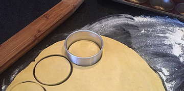 Lightly dust your counter surface and roll the pastry to a thickness of about three millimetres.