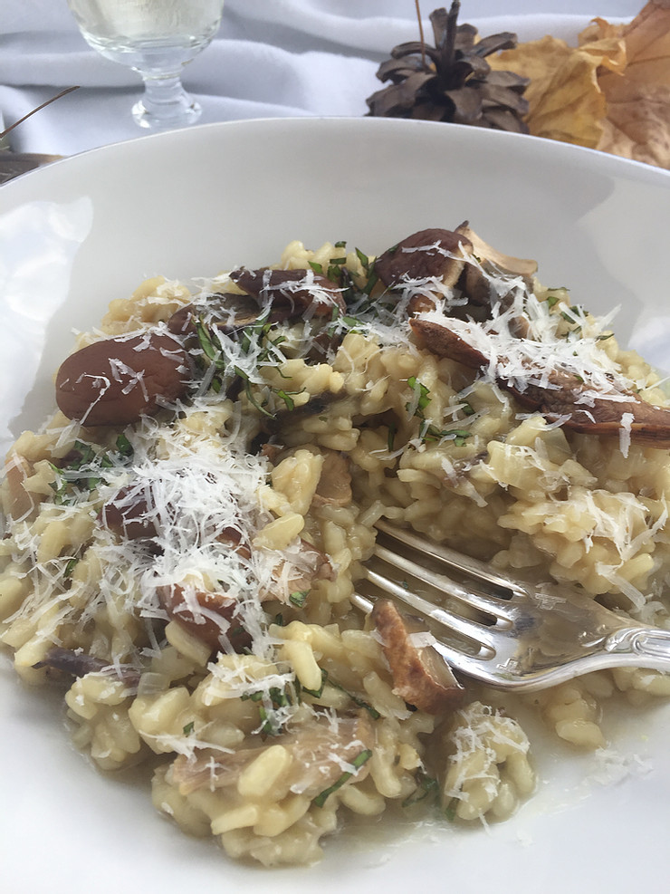 Because the risotto relies on the mushroom for its dominant flavour I would recommend sourcing dried Porcini mushrooms. They are fragrant and earthy and brings an other-worldly fabulousness to this dish. Try Delheim Wine Estate for Porcini mushrooms that have been foraged and dried on their estate and while you’re at it, get a few bottles of their Sauvignon Blanc as well! (See the COOK & BOOK section for more detail on Delheim).