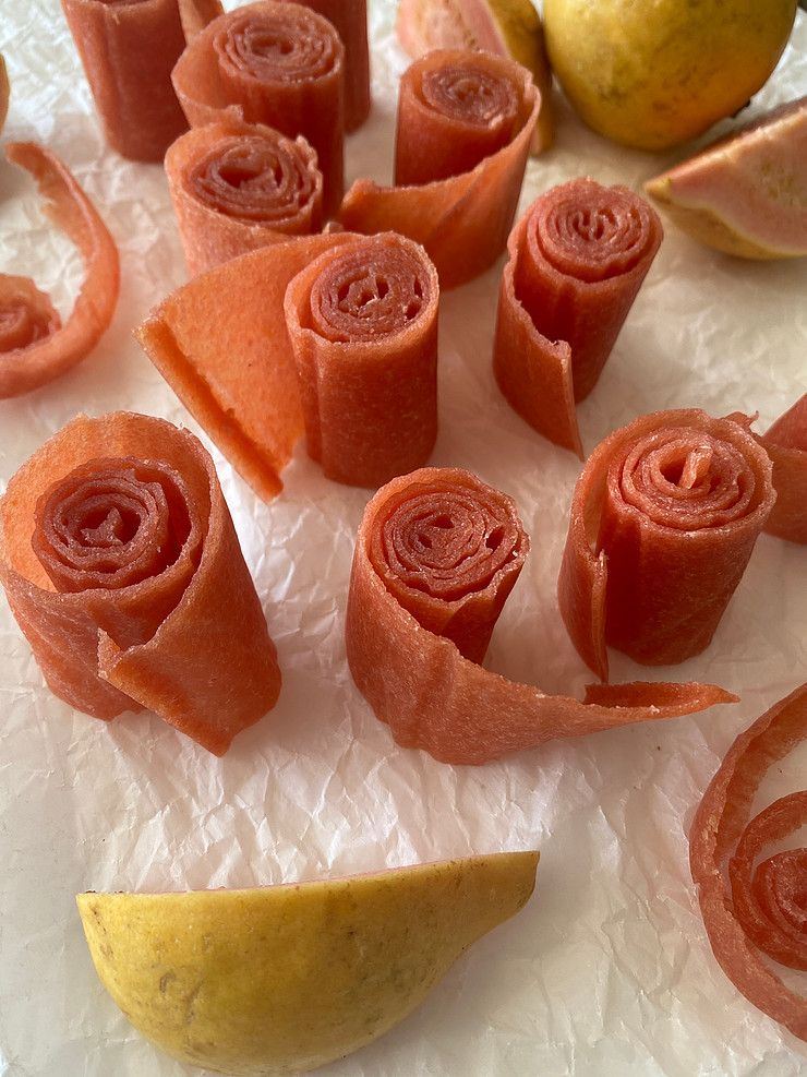 Fruit Rolls or Fruit Leather is a naturally sweet treat that is not only delicious but provides a nutritious, high-energy snack. You don’t need tens of kilograms of fruit to make these rolls and it can be made from most fruits: guava, apples, pears, quince, apricot, peach, strawberries, bananas and even combinations of different fruits.