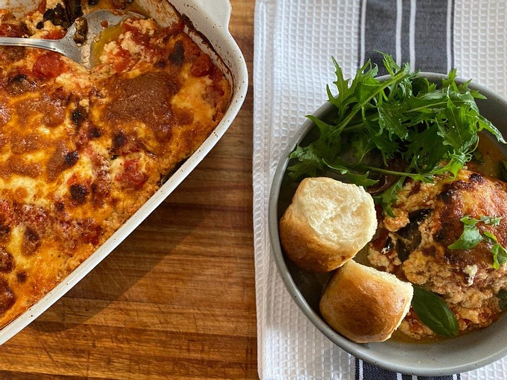 This cheesy bake is the perfect vegetarian dish for cold winters days. This recipe serves eight as a main, served with a roll or some fresh crusty bread to mop up the juices and a fresh salad to cut through the richness.