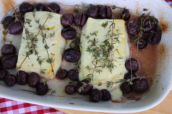 I love baked feta cheese and olives, slightly warm, spread onto a slice of crusty fresh bread. It makes a great canapé or side dish to a casual lunch and is especially good with oven roasted vegetables!