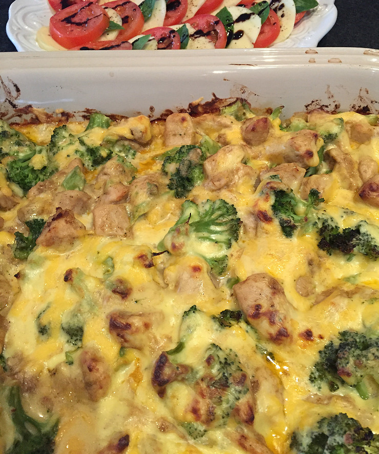 Cover the chicken and broccoli with the béchamel sauce and sprinkle the rest of the cheeses over.