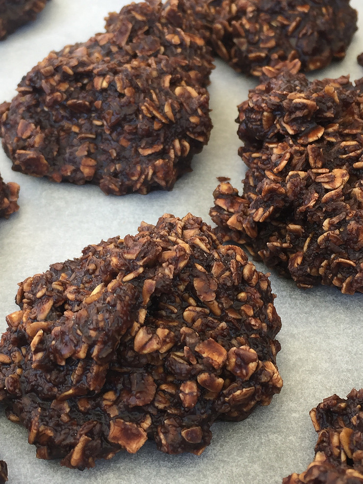 Take the mixture off the heat and add the vanilla, oats and coconut. Mix well.