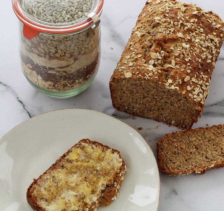 This quick bread is healthy, fragrant and the perfect carrier for a special open sandwich. Cool the bread completely before slicing it as it has a fragile crumb.