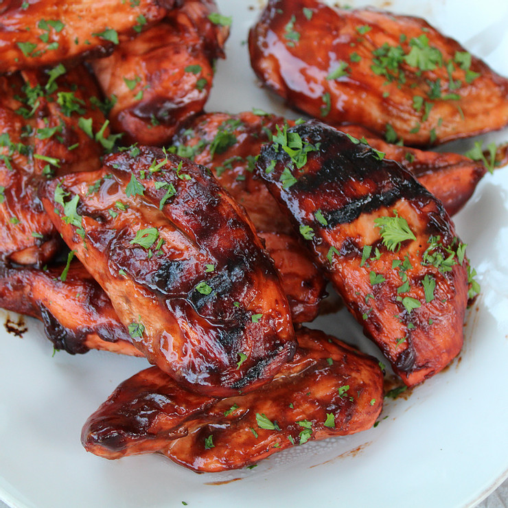 Remove the breasts from the fire and once more baste it with the remaining marinade.