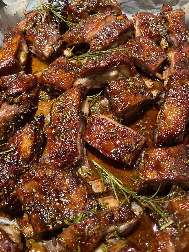Mix the chopped rosemary, honey and brown sugar in a small bowl. Brush the glaze onto the ribs, being generous about it!