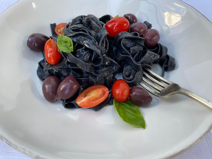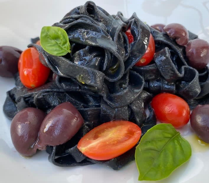 Impress your dinner guests with this easy to make activated charcoal tagliatelle. Much easier to work with than squid ink, activated charcoal has claims to benefit your digestive tract. You can buy Activated Charcoal from health shops but a few supermarkets also keep it. The recipe provides for 4 – 6 portions.