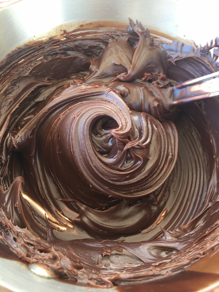 When cold, whisk the mixture for one minute until it starts changing colour and becomes creamy. It will be a lighter brown and will have a fluffiness to it.