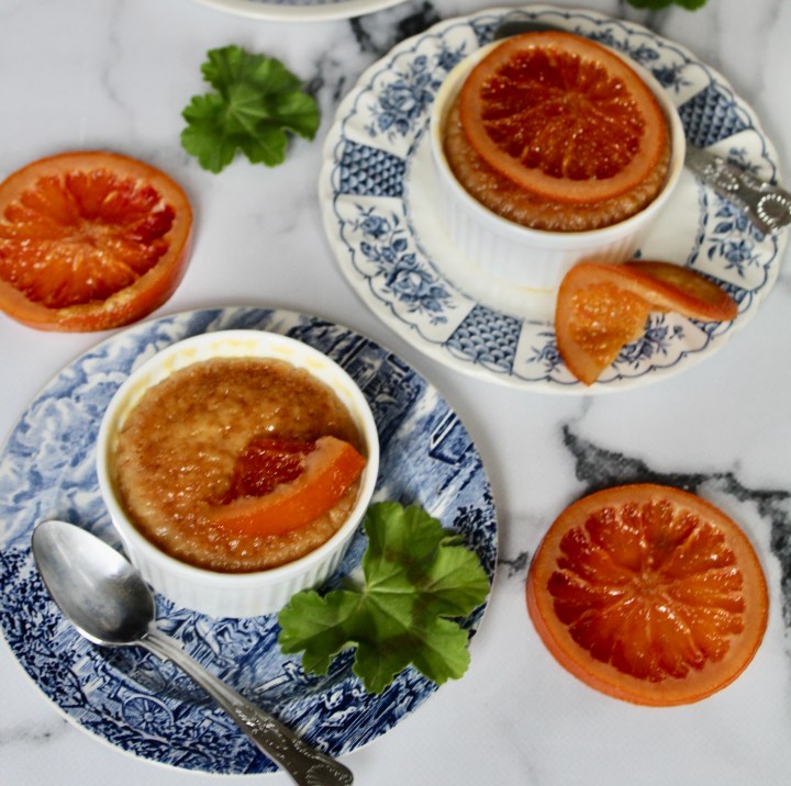 * Place one or two slices of blood oranges on top of each pudding and bake for another 10 minutes.