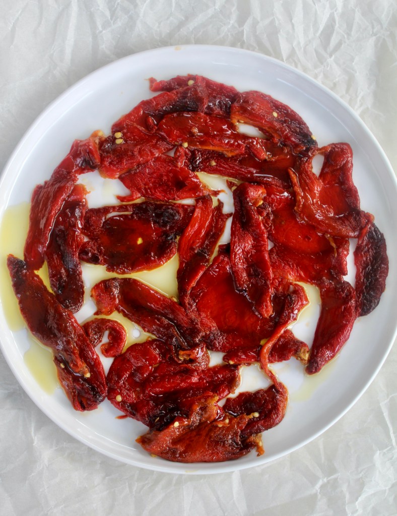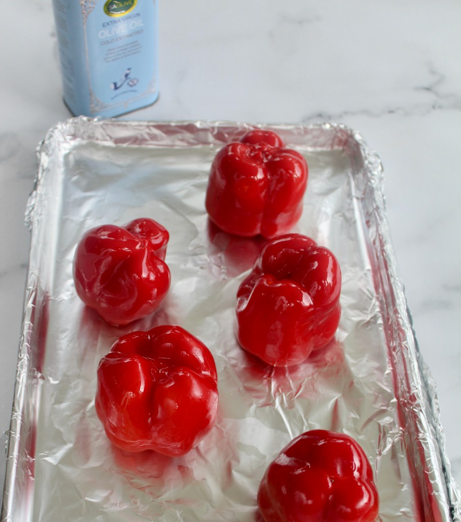 red or yellow bell peppers – the green peppers are not ideal for roasting, but you can if you must!