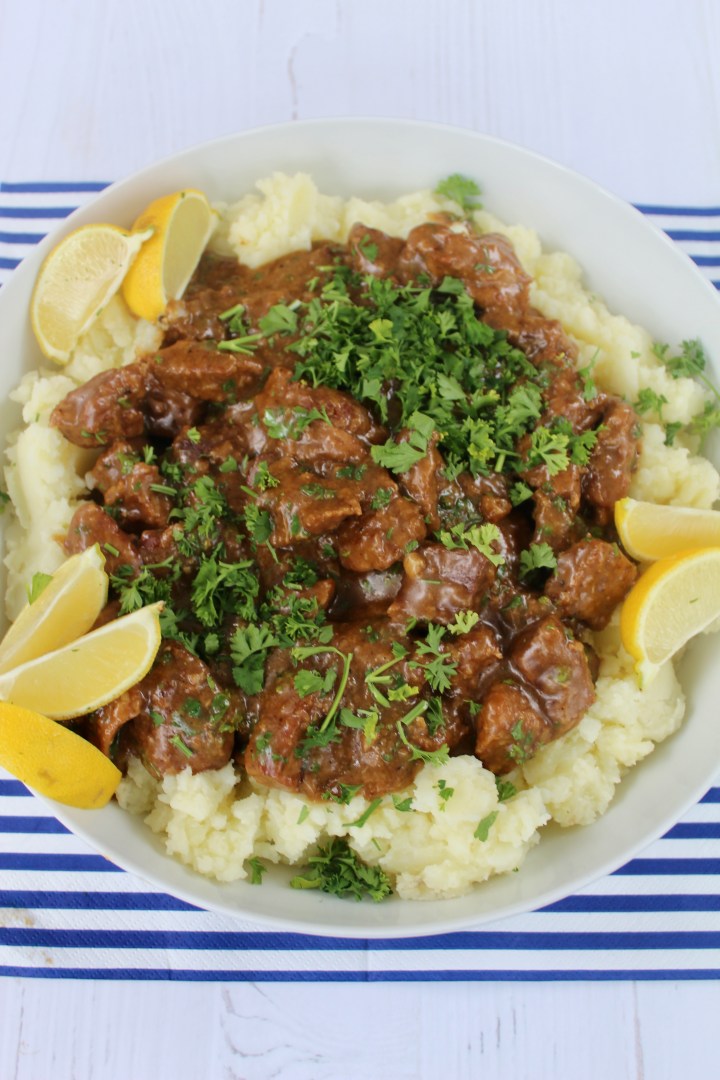 Greek Sofrito is originally from the island of Corfu. It is a hearty and delicious meal of beef cooked in a garlic and vinegar sauce which in turn produces a fork-tender beef stew that literally melts in one’s mouth. This is a very traditional version and a staple food in every household …. I do hope you give it a try!