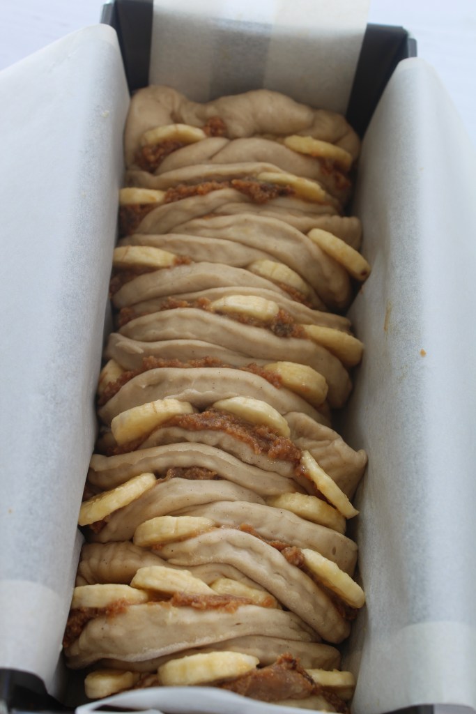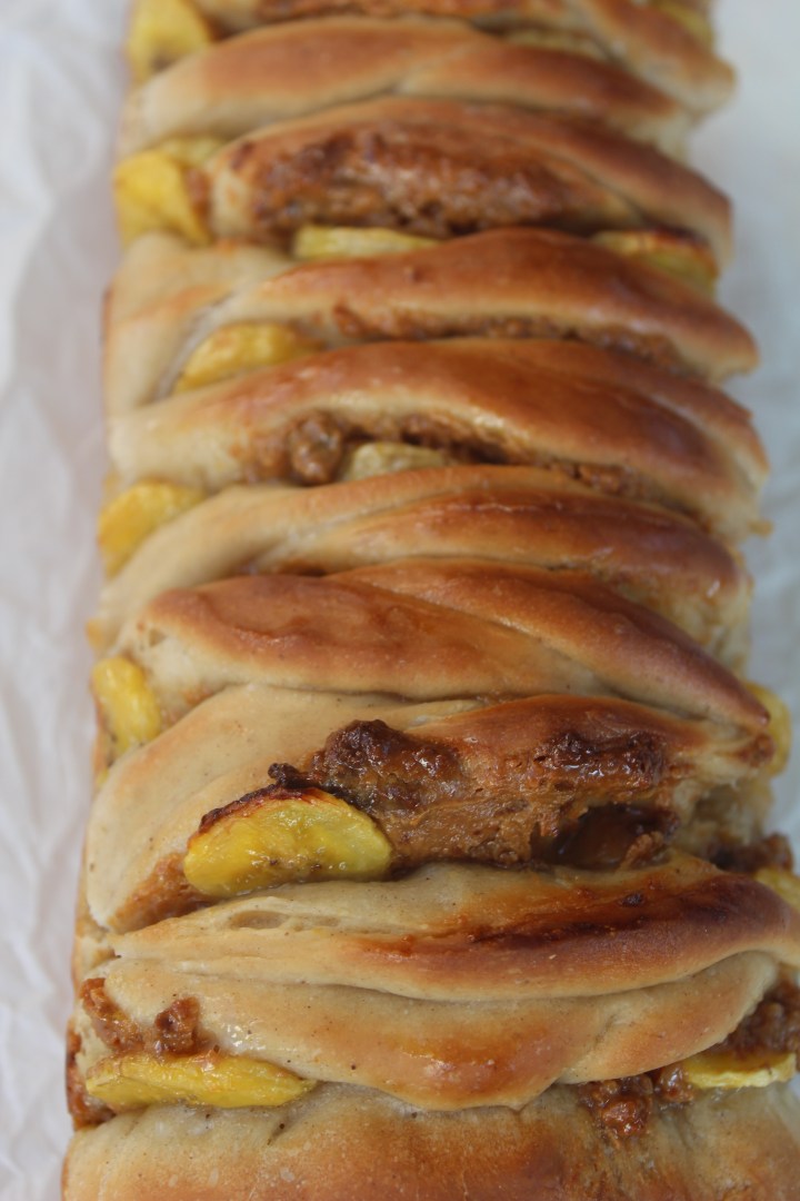 Spread a teaspoon of caramel on half of each circle and place 3 slices of banana on top.