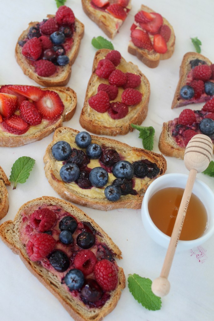 Pile some more fruit on the toasts and drizzle with extra honey before serving.
