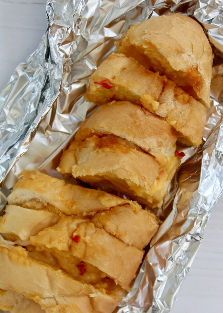 Add the cheese spread, butter, garlic and chillies to a small saucepan and place over a low heat.