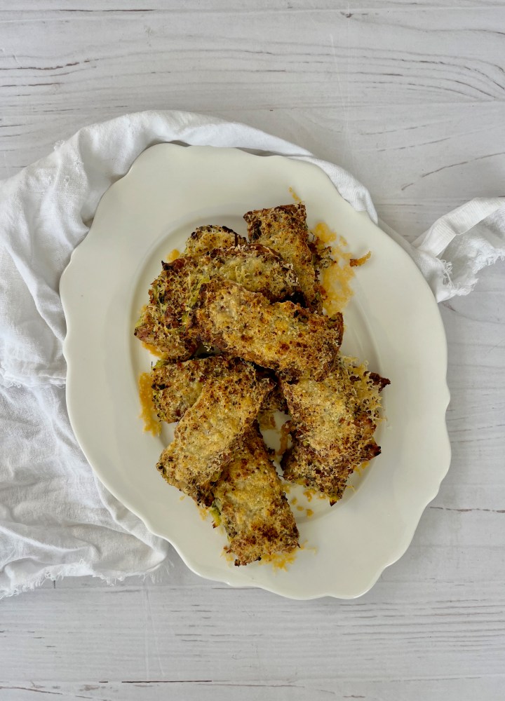 Preheat your oven to 180℃ and spray a 21cm x 28cm ovenproof dish with cooking spray. Line a large baking sheet with baking paper and set aside.