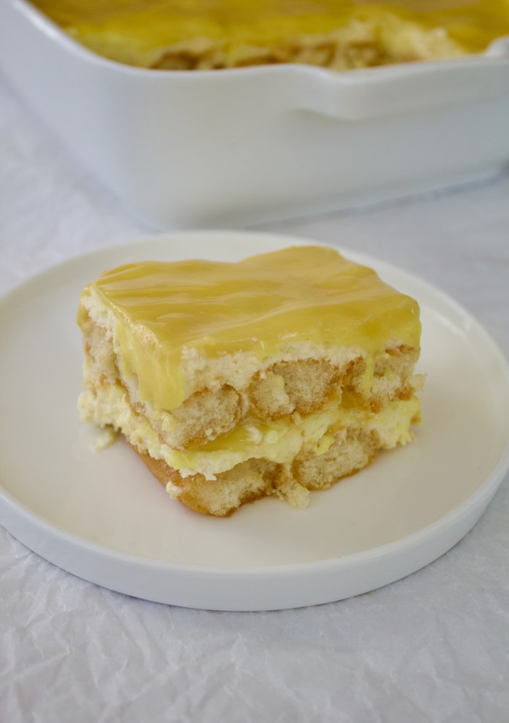 Spread the last 125ml lemon curd evenly over the top of the tiramisu.
