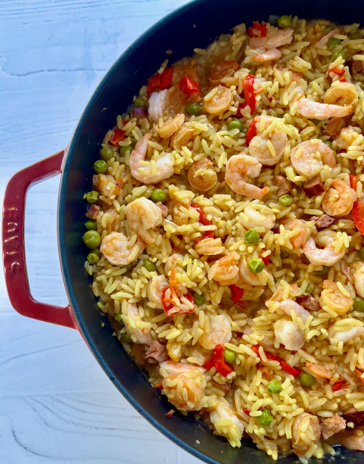 Dear Sir, thanks for your kind words… Any long grain rice may be used to cook paella with. The authentic dish is cooked until dry and allows the rice to form a crust at the bottom of the pan. This particular recipe is a short-cut of sorts and one may simply cook as per the instructions.