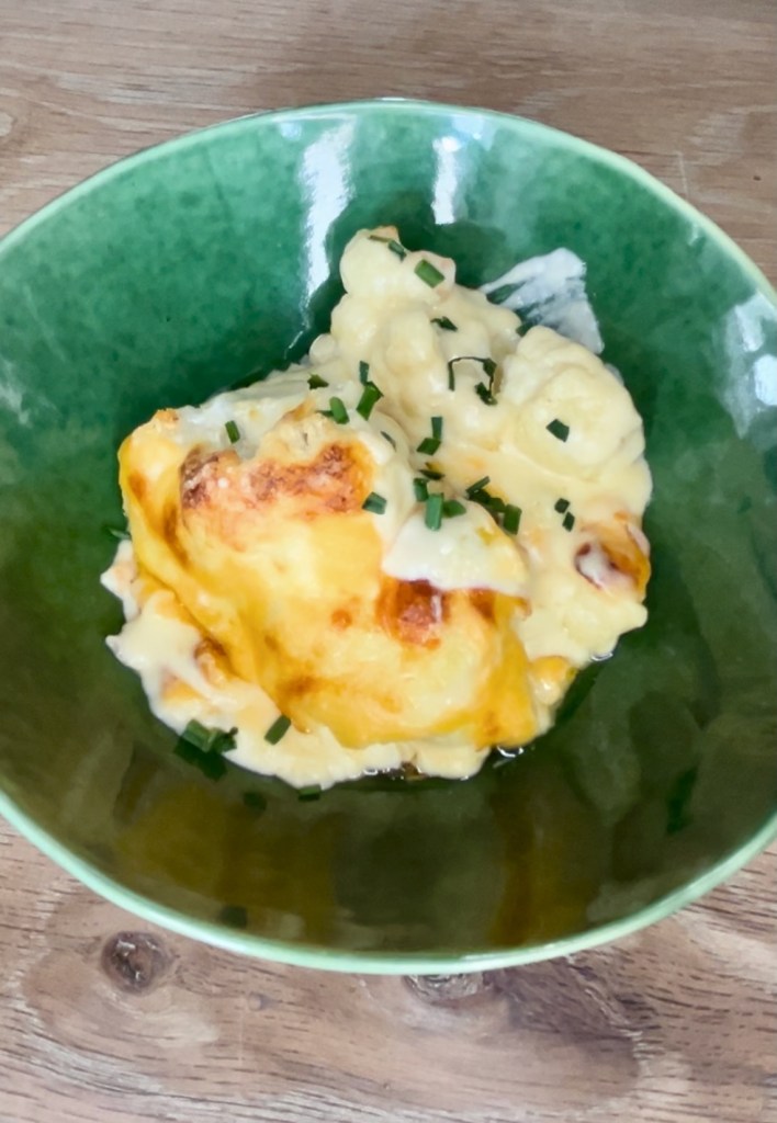 Bake the cauliflower cheese in the oven for 30 minutes.