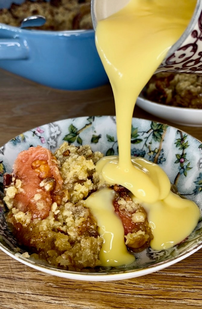 Scatter the crumble over the guavas and bake for 30 minutes until golden brown and crunchy.