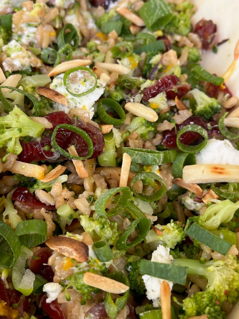Cook the broccoli until just tender, rinse under cold running water and drain well. Add it to the rice.