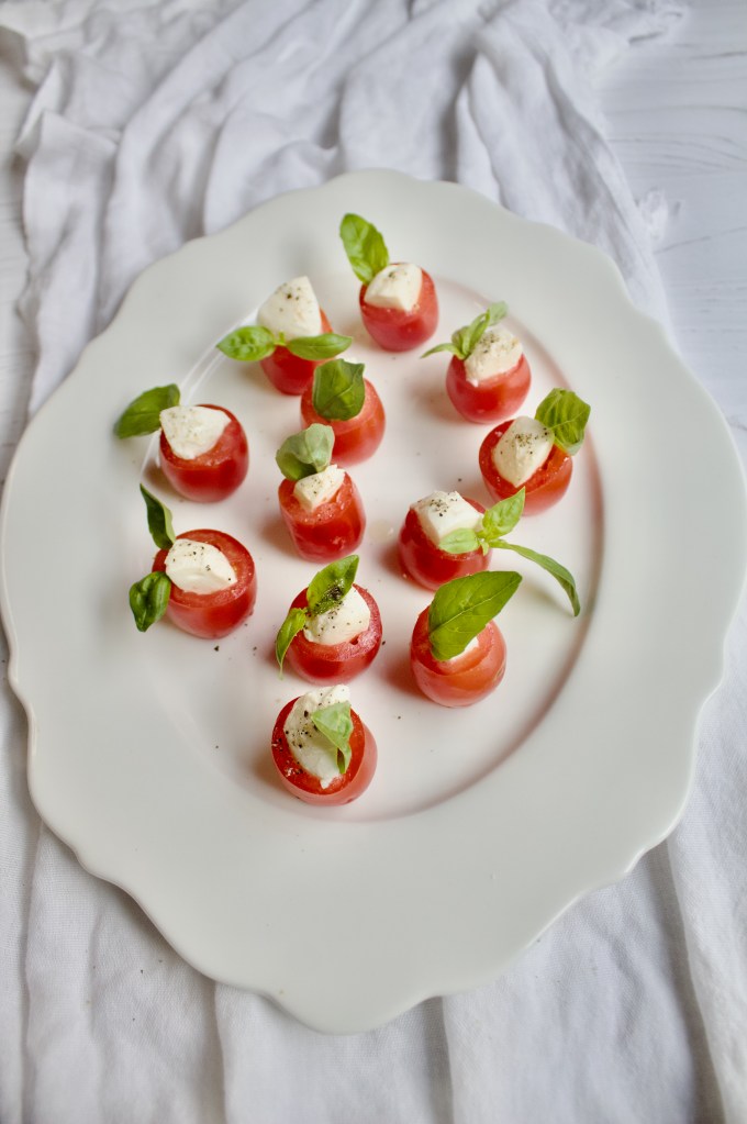Add some more of the horseradish mixture and top with grapes and cucumber strips.