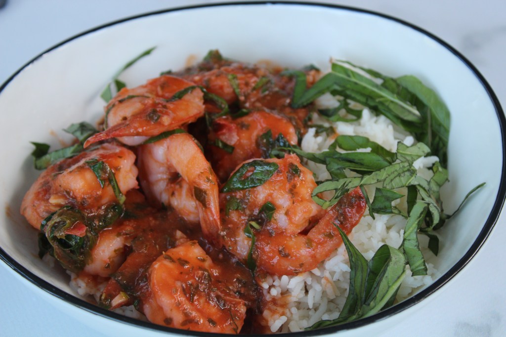Add the prawns and cook until pink – about 3 minutes.