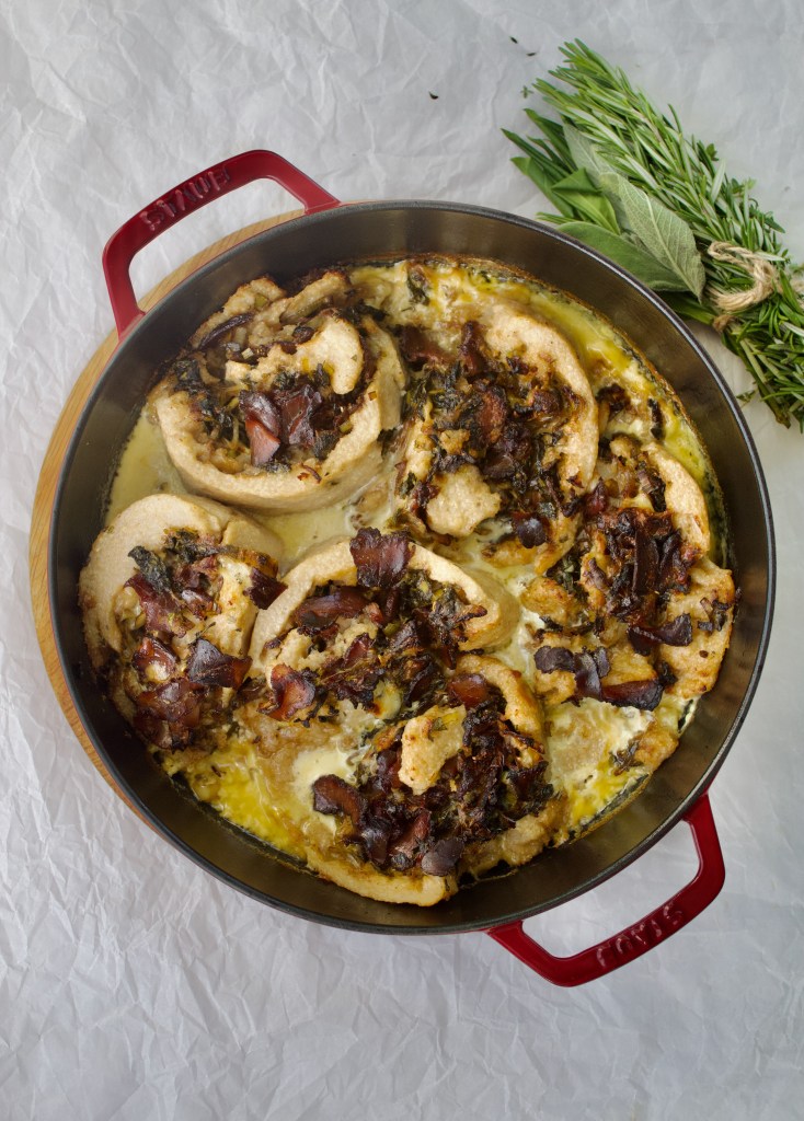 Spread the caramelised onion mixture, remaining cheese and biltong over the warm pap and allow it to cool for 5-10 minutes.