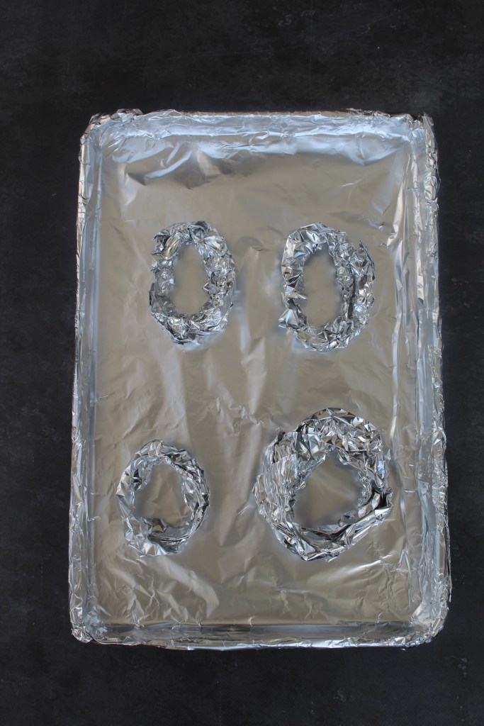 foil nests to rest the halved avocado pears in while baking