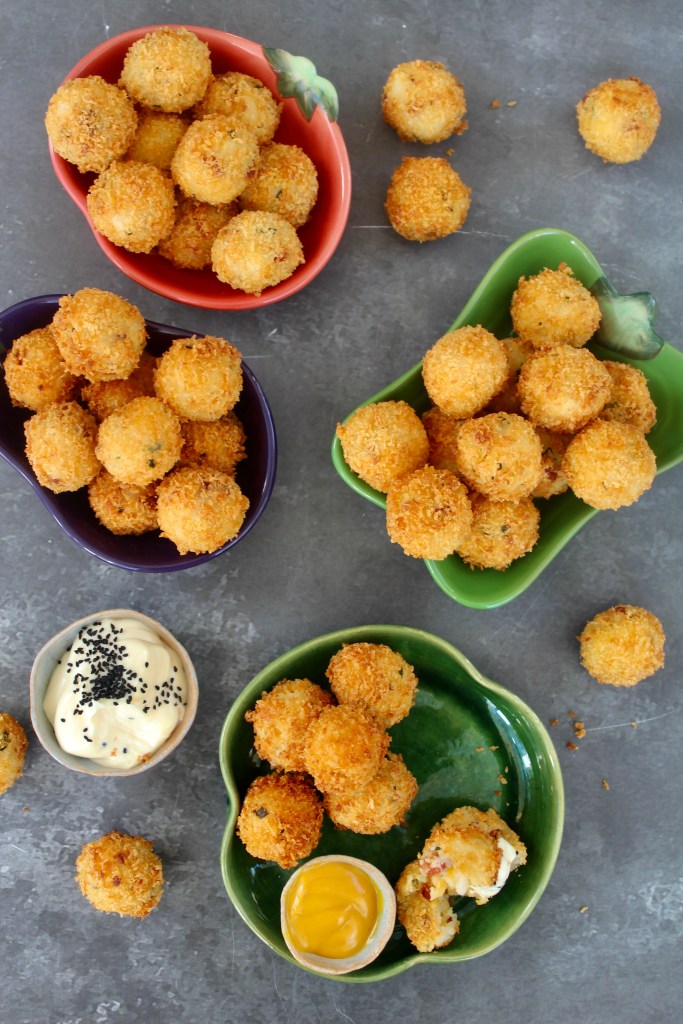 The word croquette is derived from the French word croquer which means “to crunch” and that is exactly what these potato bites are: a soft, cloudy potato with a heavenly crunch on the outside. Makes about 50 balls and is an excellent way of using leftover mashed potato.