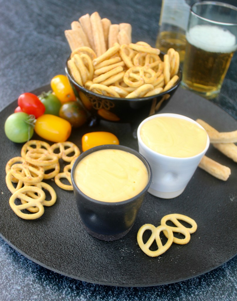 Add the butter to a small saucepan over a low heat. Stir until the butter has melted. Add the flour and cook for 30 seconds while stirring. Add the mustard powder and stir through. Pour in the beer in a thin stream while whisking constantly. Turn the heat to low, stir in the cream and add the cheese. Stir until completely melted and incorporated as a sauce. Serve the sauce as a dip with vegetable sticks, pretzels or bread sticks.
