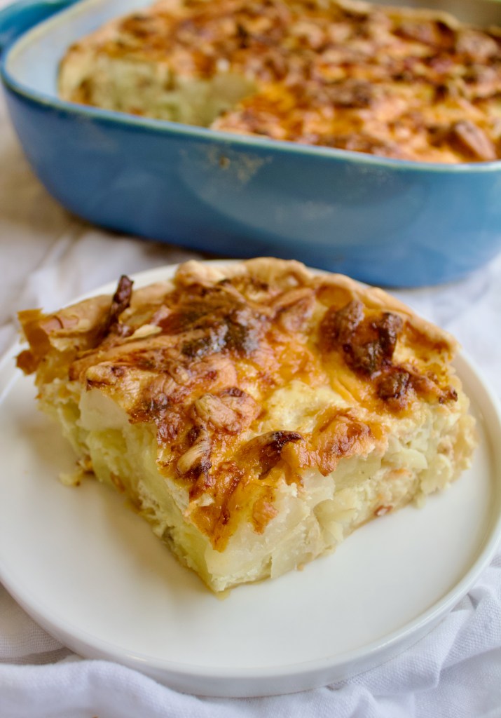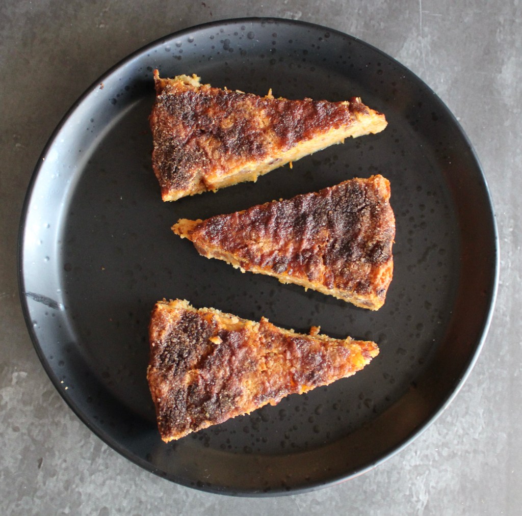 Serve the pie warm or at room temperature.