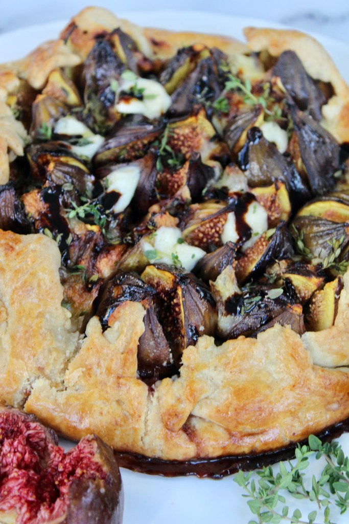 Preheat your oven to 190℃ and line a large baking sheet with baking paper. Roll the pastry to a 30cm circle and mark a 5cm border on the outside edges. Place the pastry on the prepared baking sheet. Spread the cream cheese evenly on the pastry, keeping the border clear. Spoon the caramelised onion on the cream cheese and spread it evenly. Cut 2 slits down the centre of each fig (or half/quarter each) and arrange onto the caramelised onion. Now arrange the bocconcini on and between the figs, drizzle the galette with olive oil and balsamic vinegar and scatter over the thyme. Fold the clear border of the pastry up/over the figs. Whisk the egg yolk and 15ml water together and evenly brush a thin layer onto the pastry. Bake the galette in the oven for 40 minutes. Remove from the oven and drizzle with more balsamic vinegar before setting aside to cool down slightly. Serve the fig galette at room temperature.